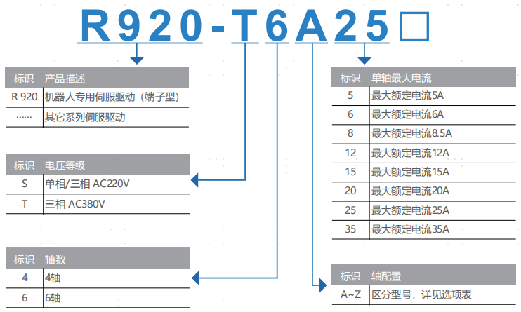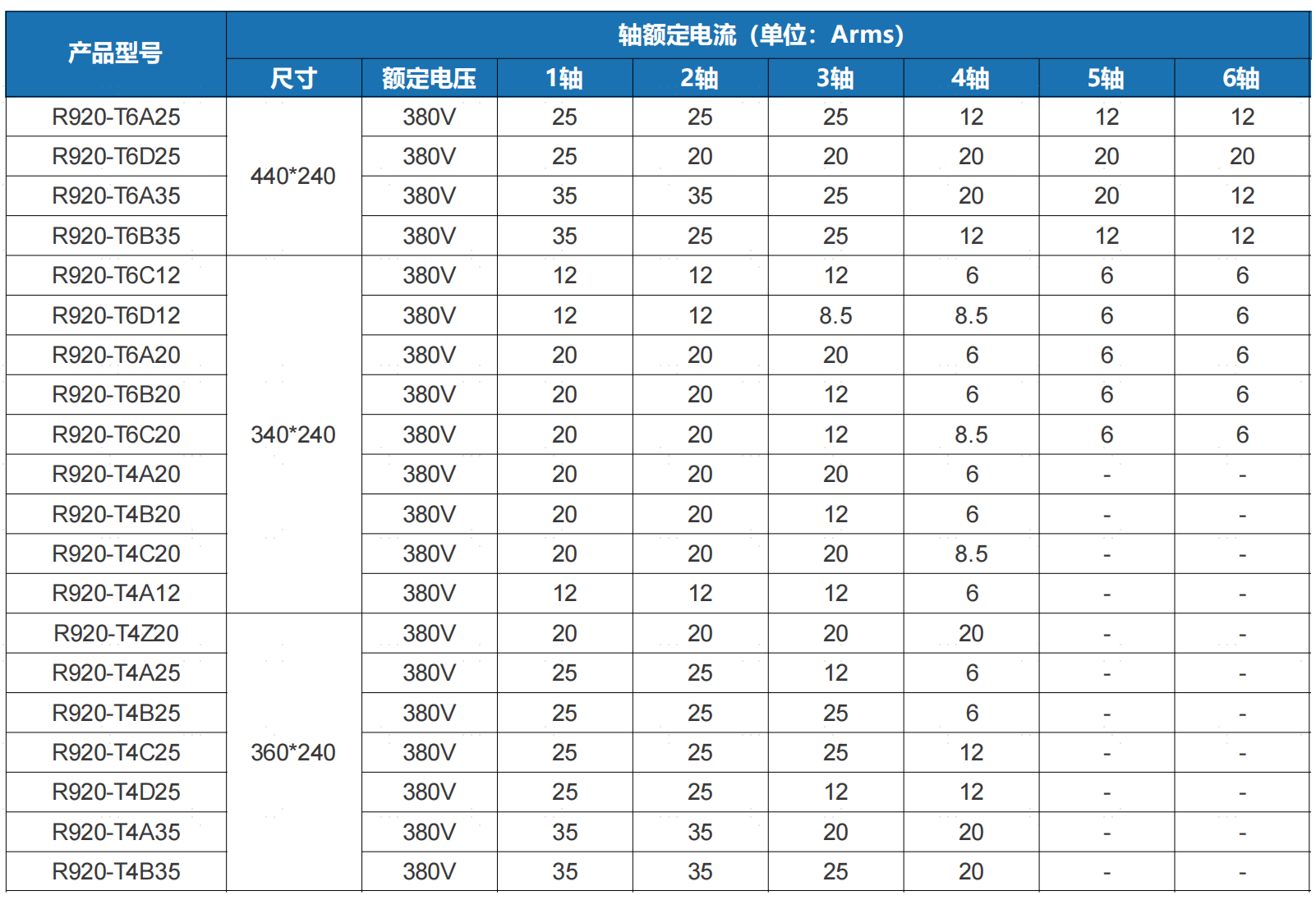 R920-T系列机器人专用伺服驱动器是一款针对机器人全场景设计的高性能多轴一体机,相比多轴模块化伺服驱动器,结构上更小巧紧凑,6轴一体伺服仅为一张A4纸大小(以6轴750W为例),机型功率组合丰富,可覆盖1.5kg~1500kg机器人需求,支持SCARA、Delta、四轴码垛、六关节等多种机器人类型,支持主流的EtherCAT通讯协议,广泛适用于各种机器人总线应用场合。